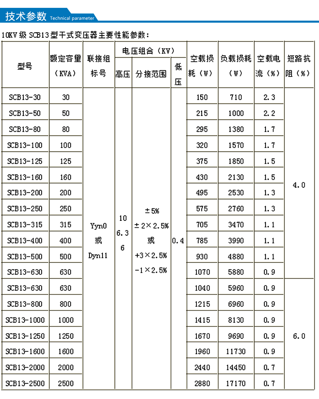 【額定容量】:30-2500kva      【額定電壓】:10kv
